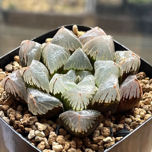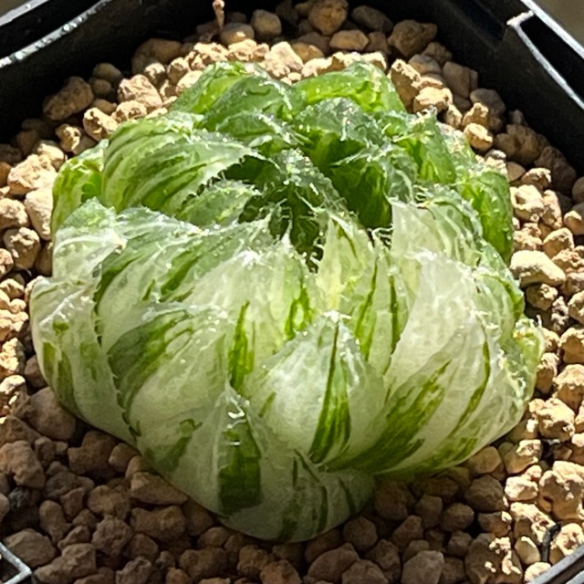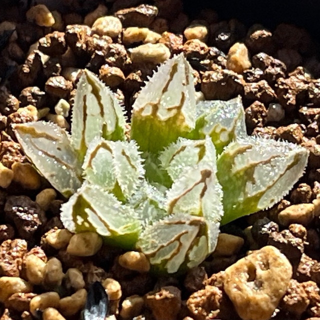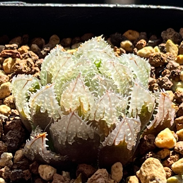 裏般若×ピクタ交配種で、ピクタの質感に裏窓が出ている新品種です。成長するとかなり見応えのある株になると思います。