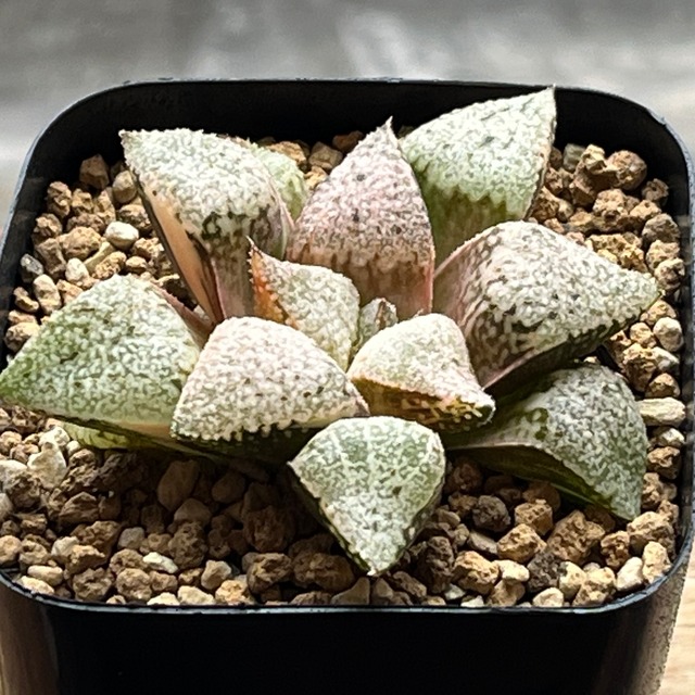 氷砂糖は新・旧ありますが、こちらは旧氷砂糖。 成長に伴い斑入りが良くなるので、白斑が強すぎる個体は全斑になりやすいです。 親株サイズで子株も良く出るので成長を楽しめます。