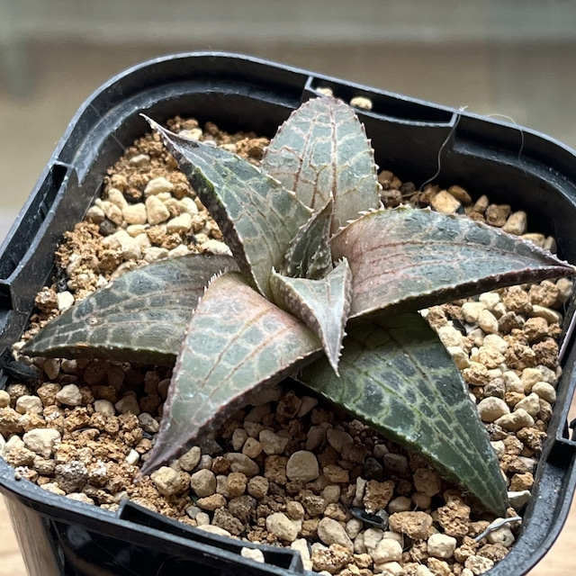 以前はハオルチア硬葉系と言われハオルチア属でしたが、現在ではハオルチオプシス属と別になりました。 爬虫類っぽい質感に綺麗な黄斑が素晴らしい品種です。渦を巻いて成長するのも面白く、成長するとサイズも10cmオーバーになります。