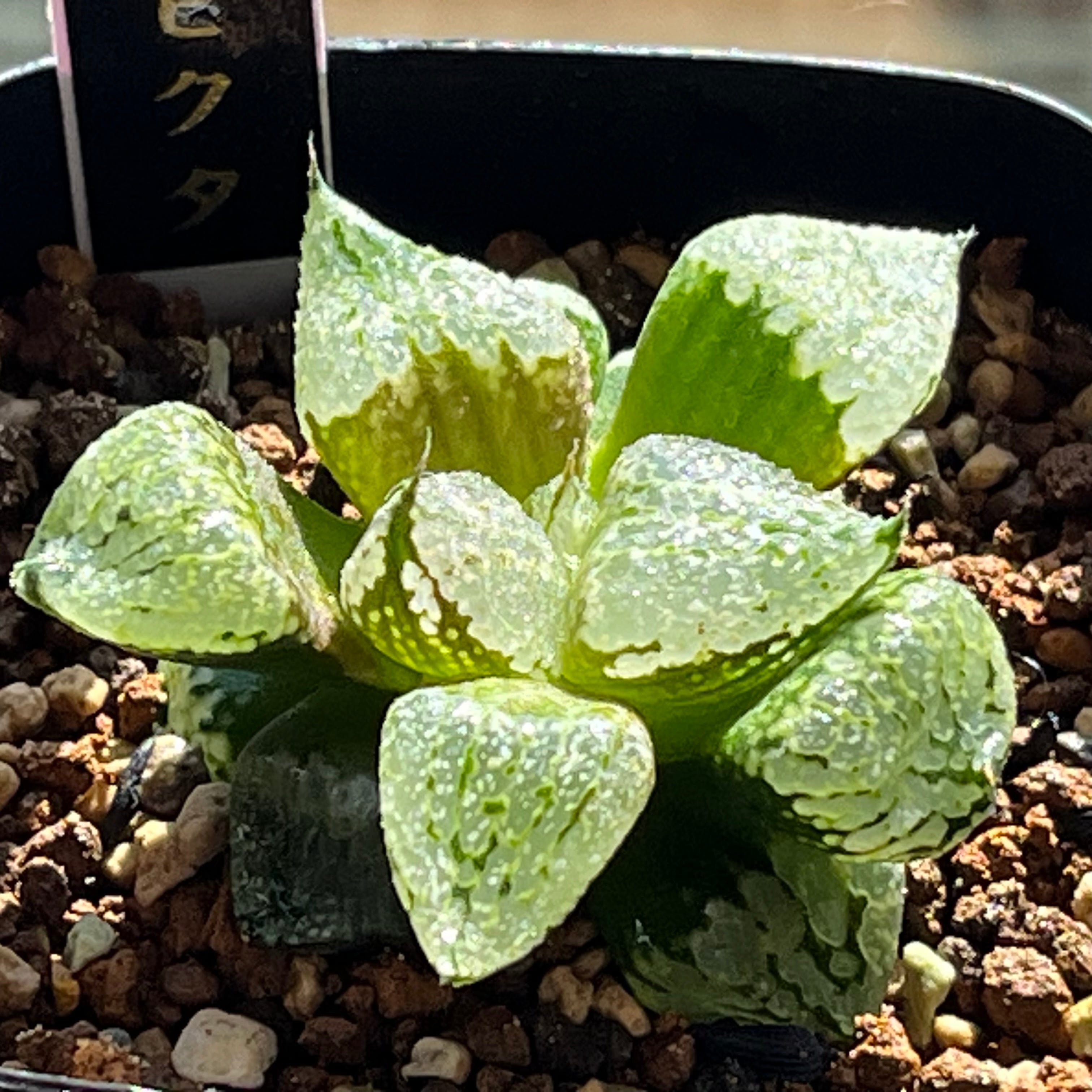 裏般若×ピクタ交配種で、ピクタの質感に裏窓が出ている新品種です。成長するとかなり見応えのある株になると思います。