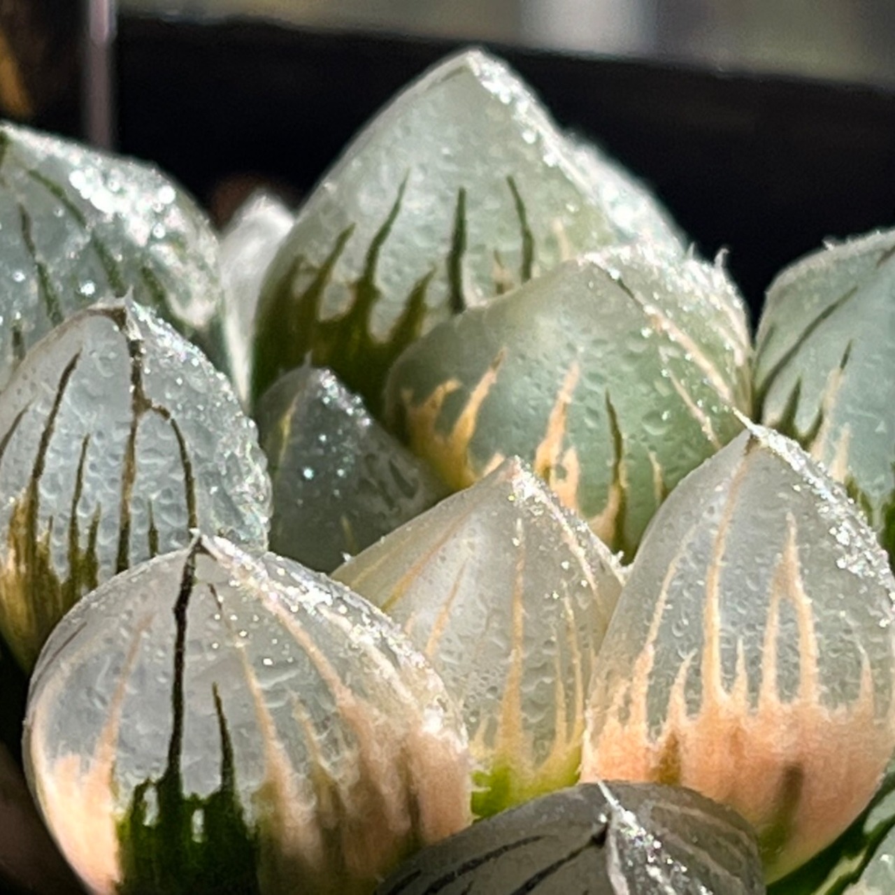 班入りが良く、透明幅広窓の綺麗さも素晴らしいです。画像の通り美しいハオルチアです。