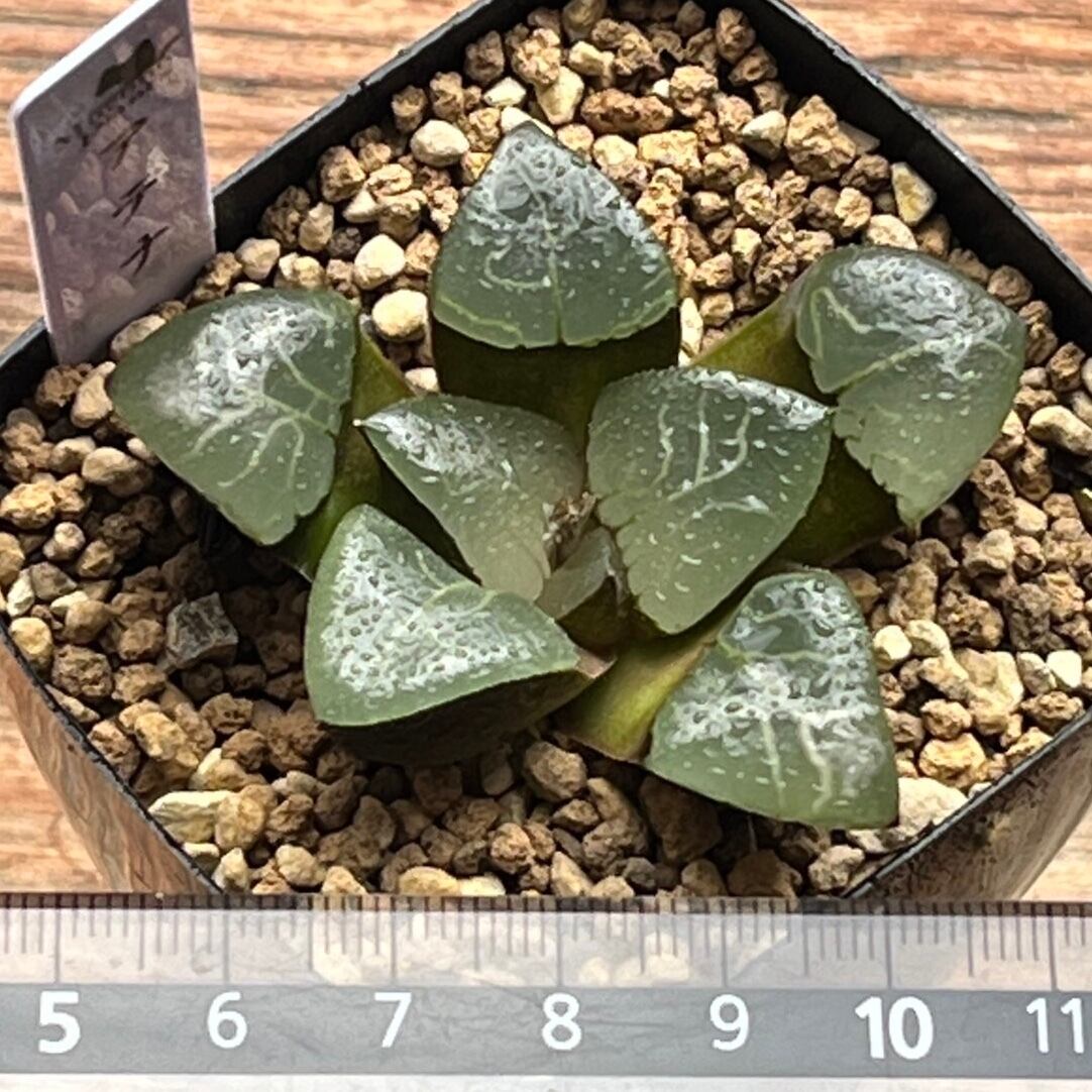 三角葉のコレクタ系で、艶々窓に幾何学模様が特徴的です。