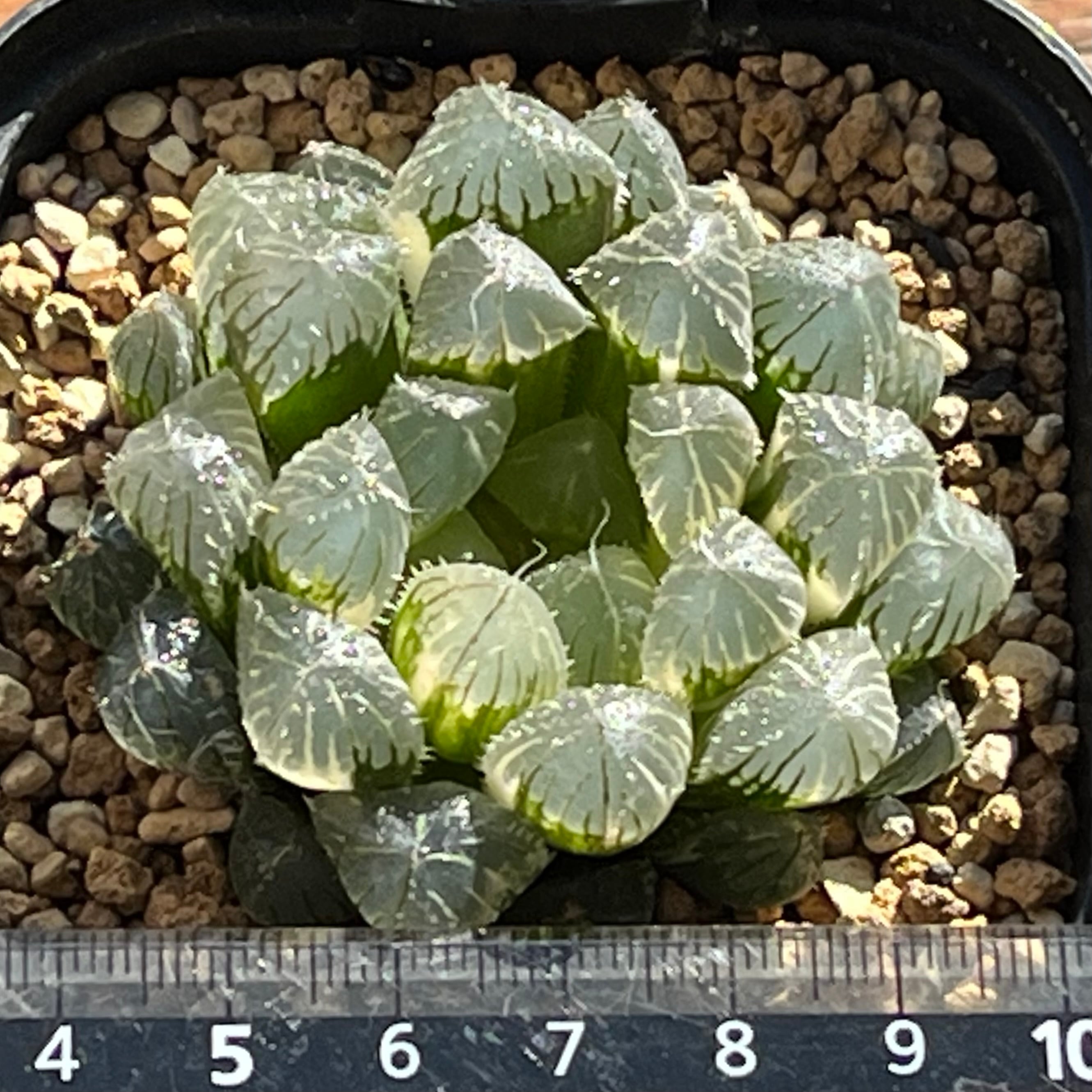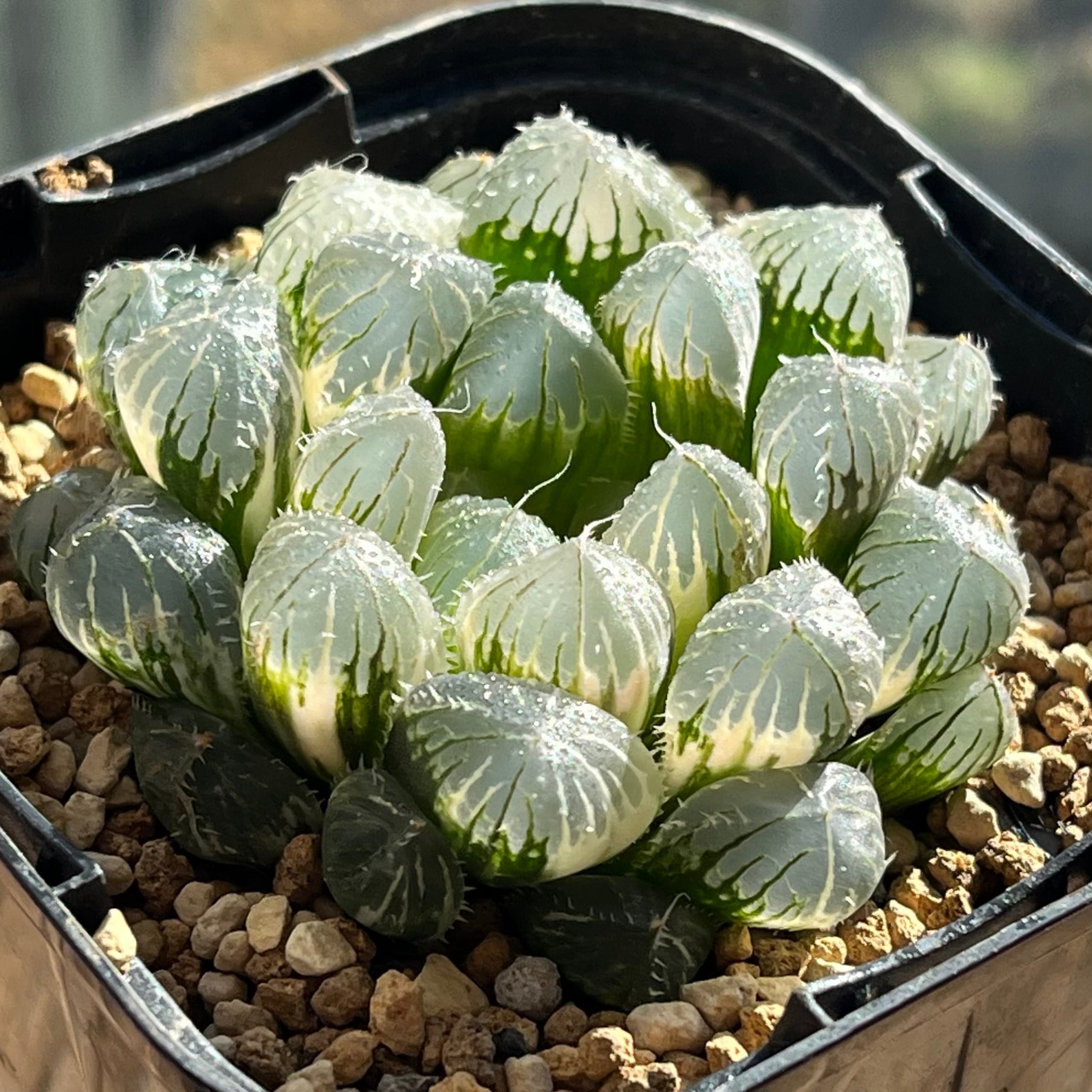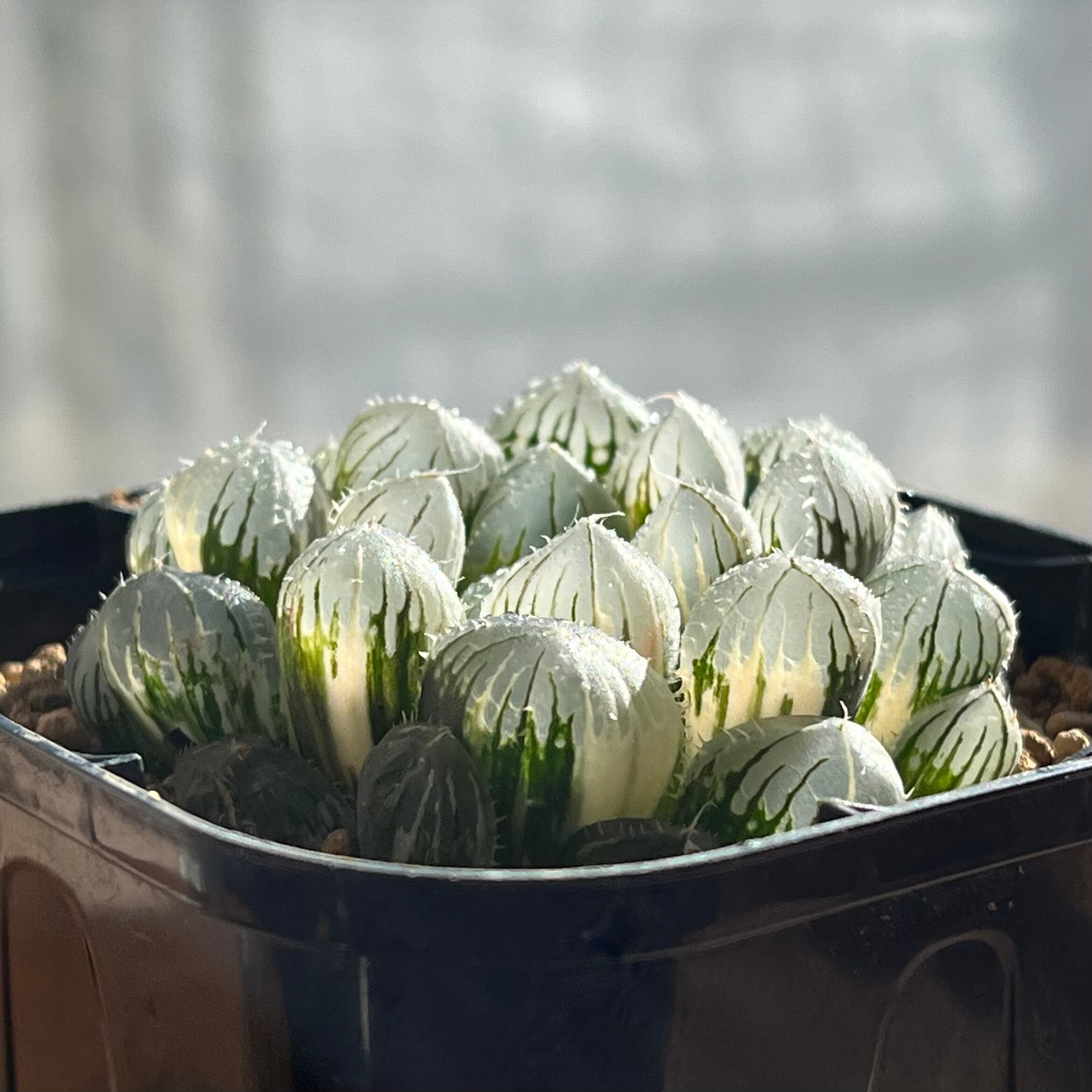 青光りした窓が美しいオブツーサ錦です。