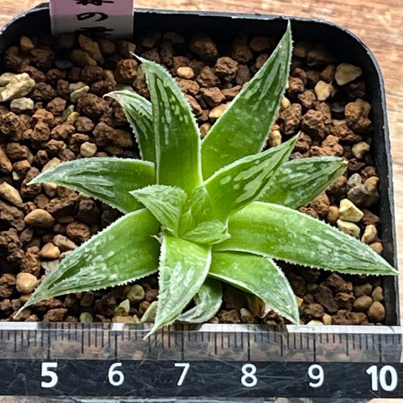 鮮やかなグリーン色にシュッとした葉形が美しい交配種です。将来的にかなり良い株になるかと思います。