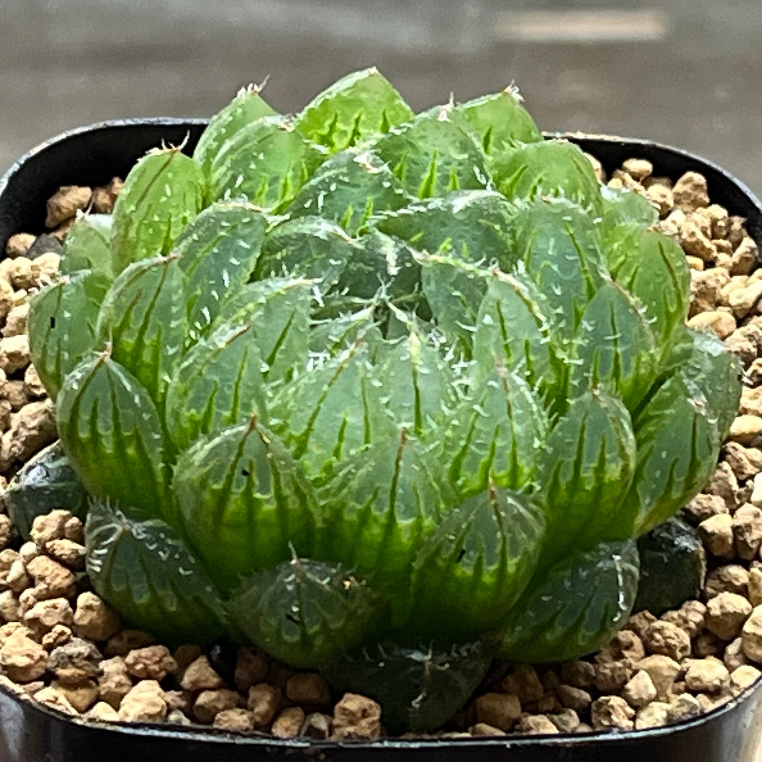 エメラルドグリーン色が美しいハオルチアです。育て易く、サイズもまだまだ大きくなります。