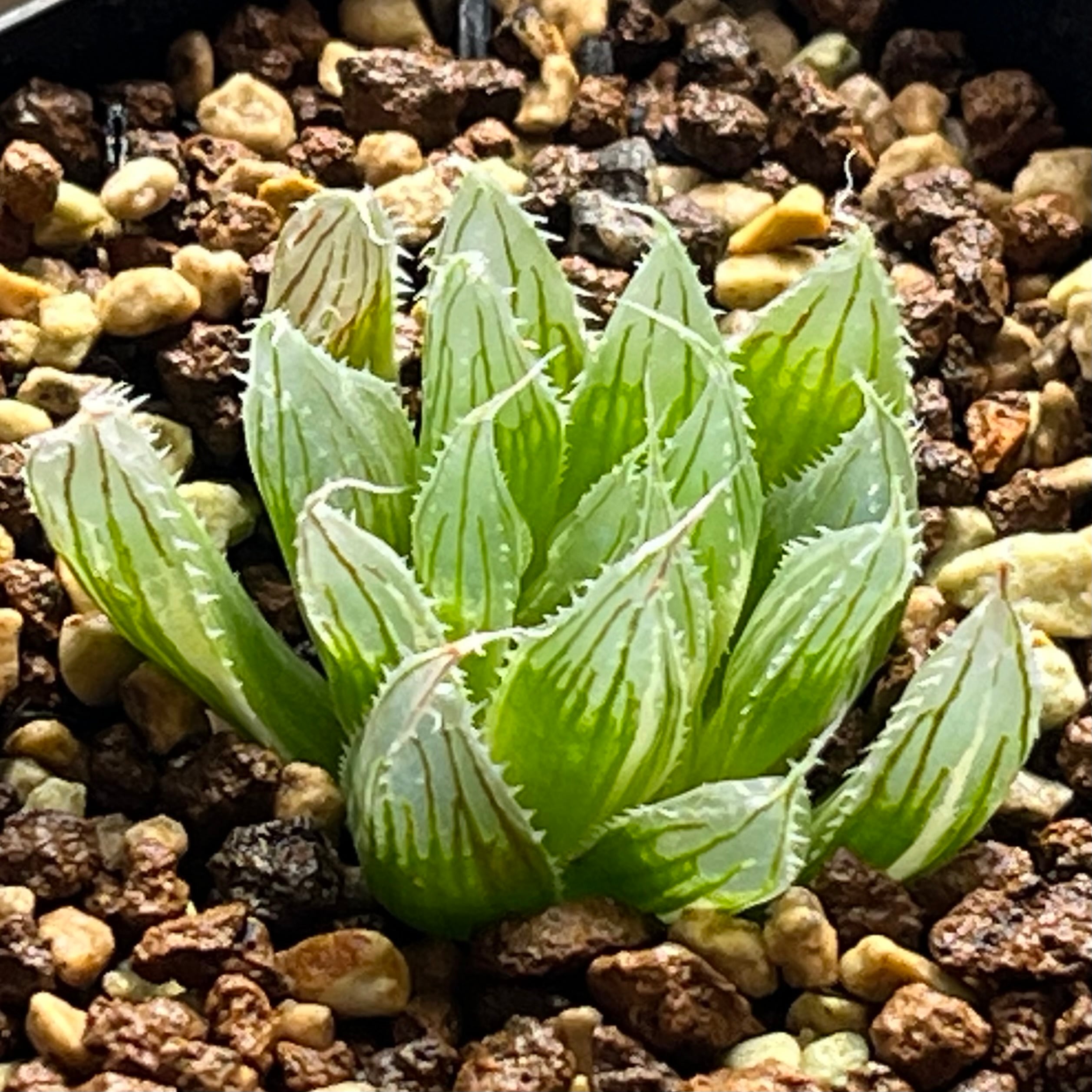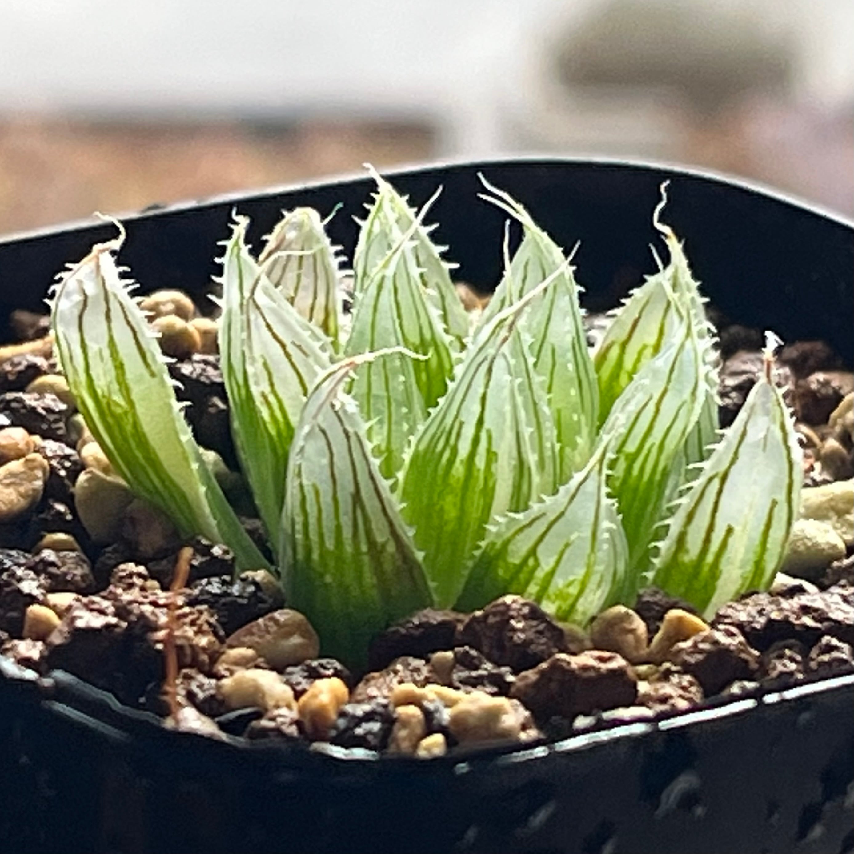 シュッとした葉にとても綺麗な窓が特徴で、斑入りも良く優良株だと思います。