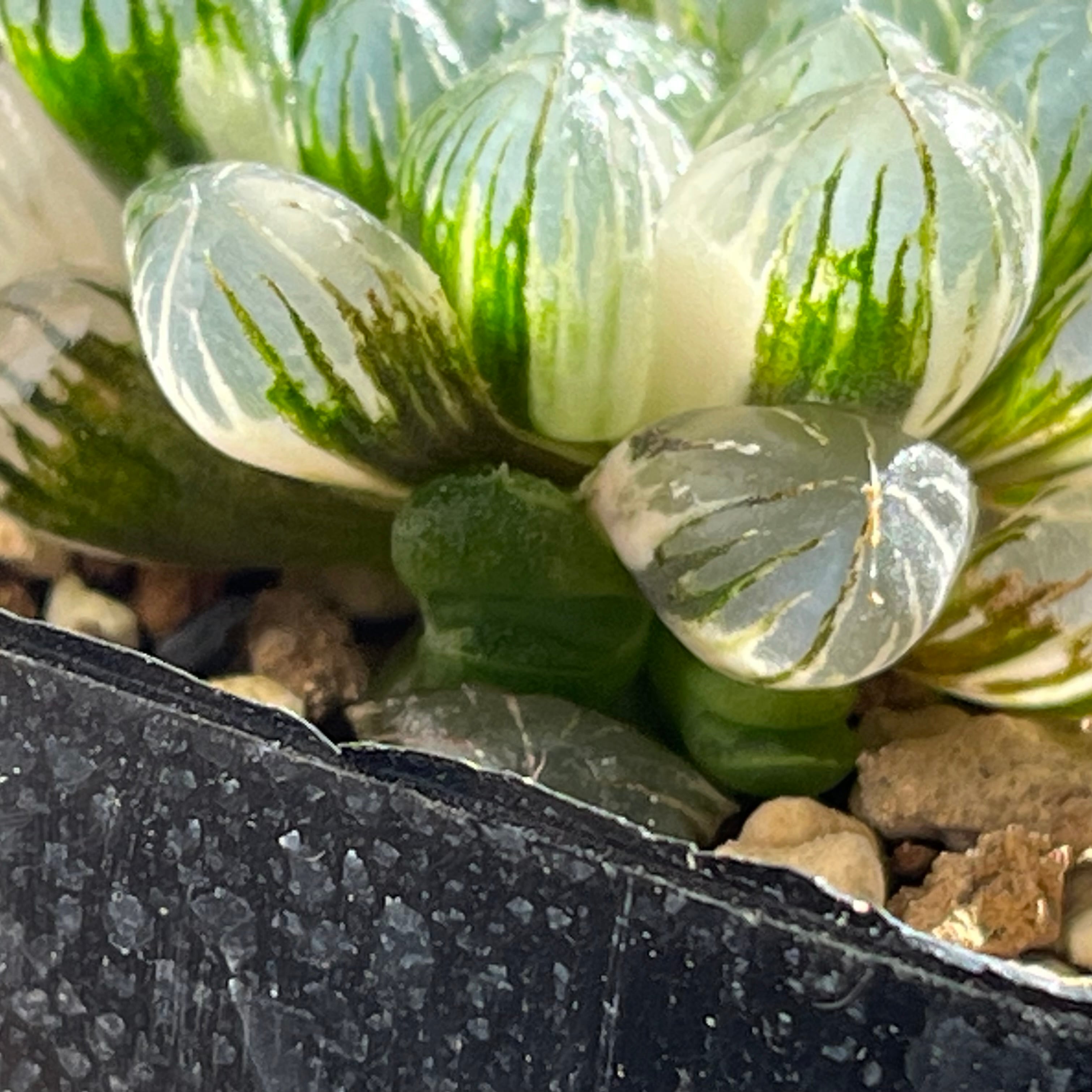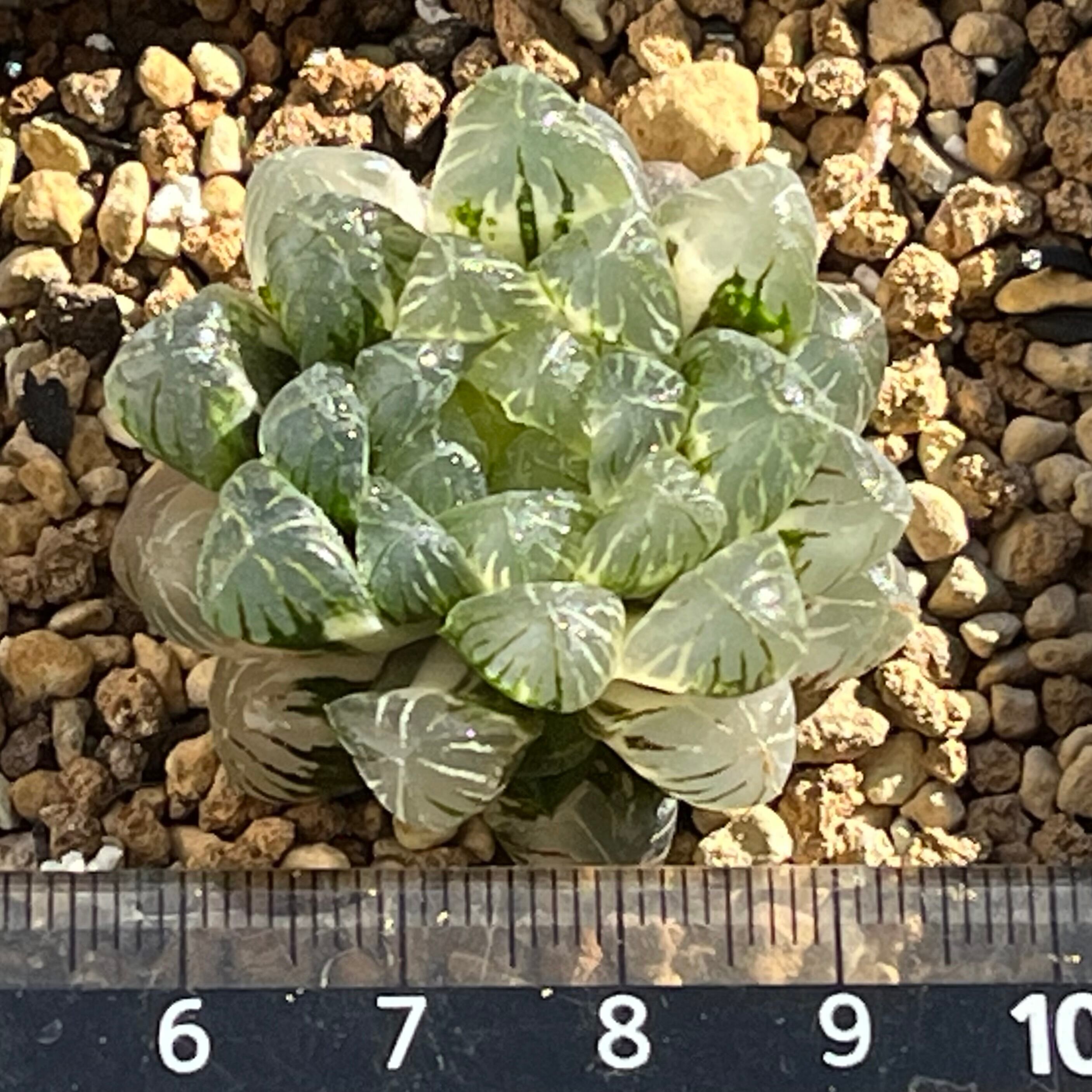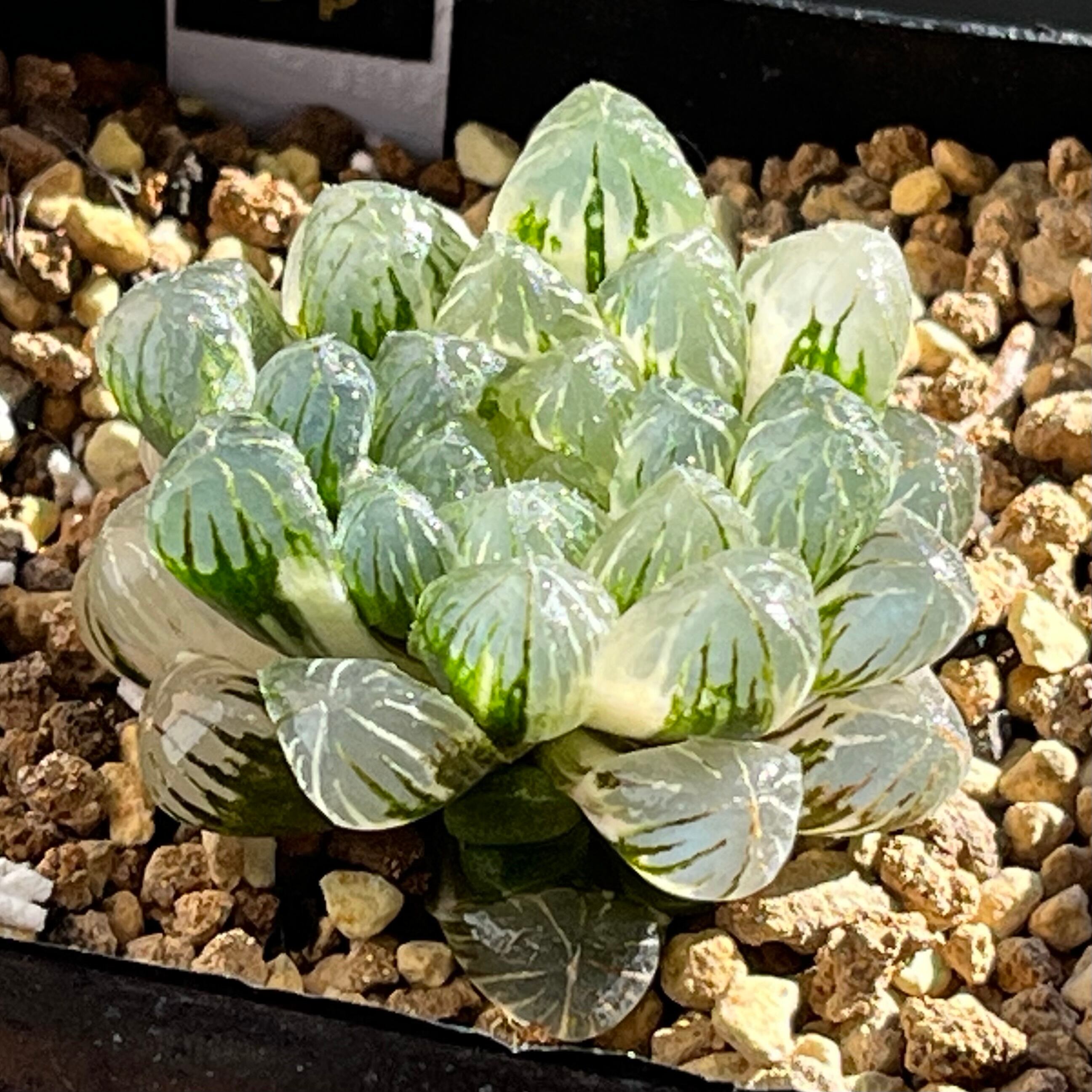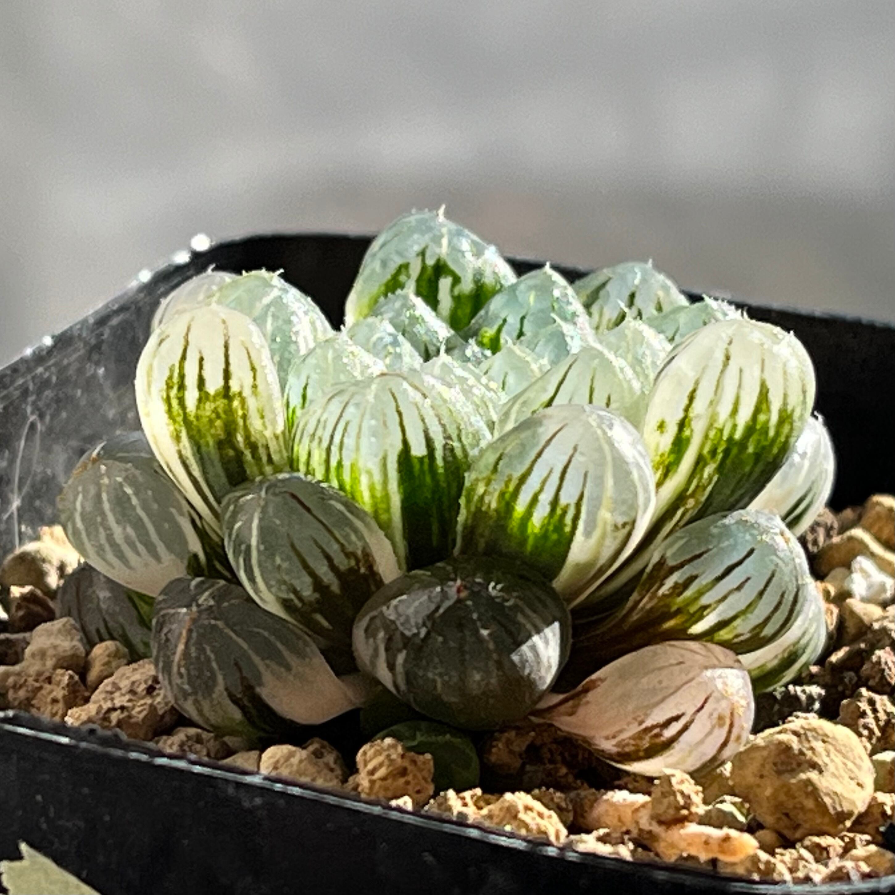 小粒のオブツーサ錦で透明度が高く、とても美しい品種です。